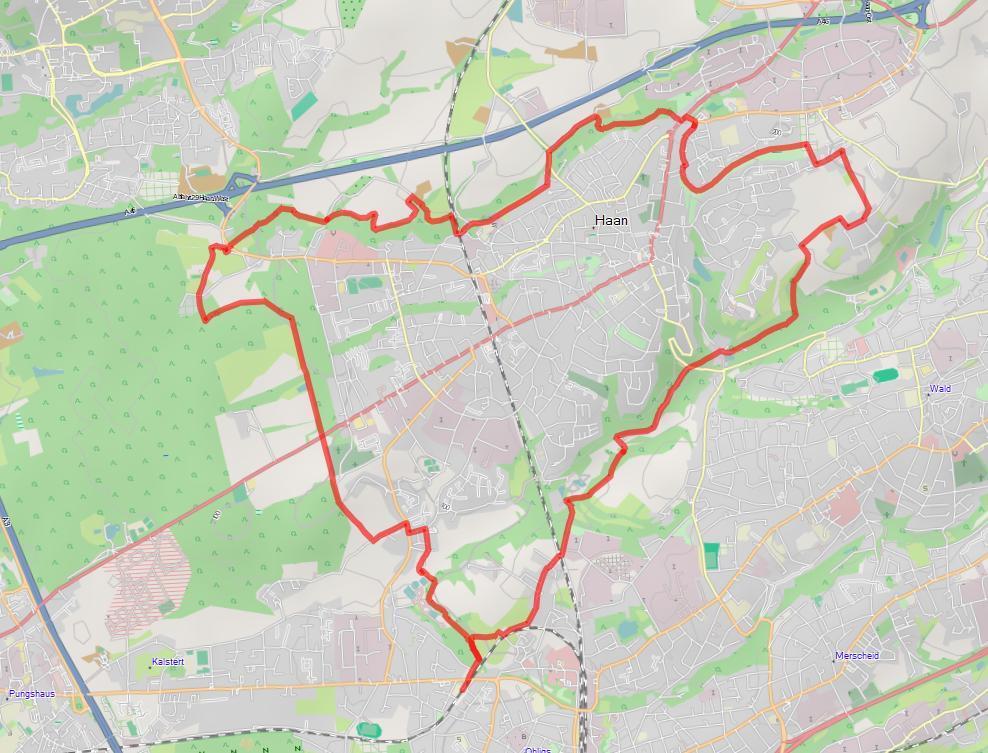| Strecke: | Abwechslungsreiche Wanderung mit wenigen Steigungen um Haan herum und durch das Itterbachtal | |
